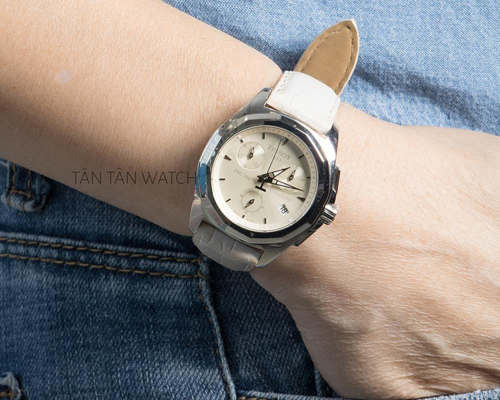 Tissot PRC100 T008.217.16.261.00 được trang bị cùng dây da ton-sur-ton với mặt số một màu sắc nhẹ nhàng, sang trọng. Đồng thời đồng hồ cũng được trang bị khoá dạng bướm hạn chế gãy dây với nút bấm tiện lợi, các quý cô có thể sử dụng thoải mái hàng ngày cho việc tháo ra và đeo vào.