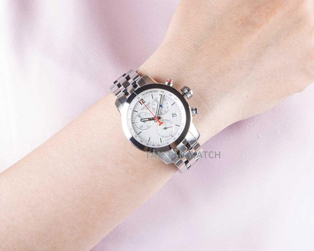 Tissot PRC 200 Tissot PRC 200 T055.217.11.017.00 sở hữu đường kính vỏ là 35mm, dày 12mm tuy nhiên thiết kế phần quai đeo đồng hồ hơi dài nên các quý cô có cổ tay to tròn đeo đẹp hơn. Đây là một con đồng hồ đa năng có thể kết hợp rất nhiều trang phục khác nhau kể cả khi đi chơi hoặc đi những sự kiện sang trọng.