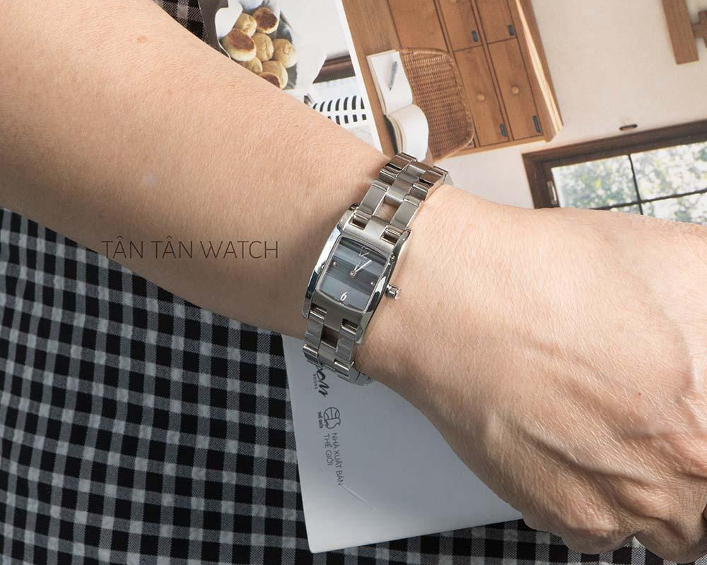 Tissot T042.109.11.127.00 thừa hưởng trọn vẹn sự sang trọng và thanh lịch đặc trưng của bộ sưu tập T-Lady. Chiếc đồng hồ này là sự kết hợp hoàn hảo giữa mặt số chữ nhật cá tính được bo tròn mềm mại cùng “bộ cánh” màu bạc thời thượng và dây đeo điệu đà tựa như một chiếc lắc tay xinh xắn.