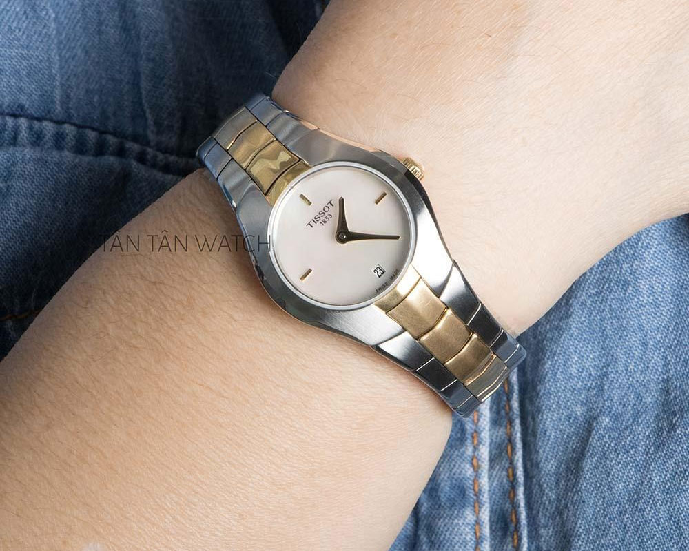Tissot là thương hiệu đồng hồ nổi tiếng đến từ Thụy Sĩ với mức giá vô cùng phải chăng. Nhờ các thiết kế đậm chất thanh lịch và trẻ trung, Tissot nhanh chóng nhận được sự yêu thích của phái nữ trên khắp thế giới. Nổi bật trong số đó là mẫu đồng hồ T096.009.22.111.00 với tông màu vàng - bạc vô cùng nổi bật và quyến rũ. Chiếc đồng hồ này còn mang nét cá tính rất riêng trong thiết kế, kết hợp cùng chất liệu cao cấp, giúp các quý cô thoải mái biến hóa theo nhiều phong cách khác nhau.