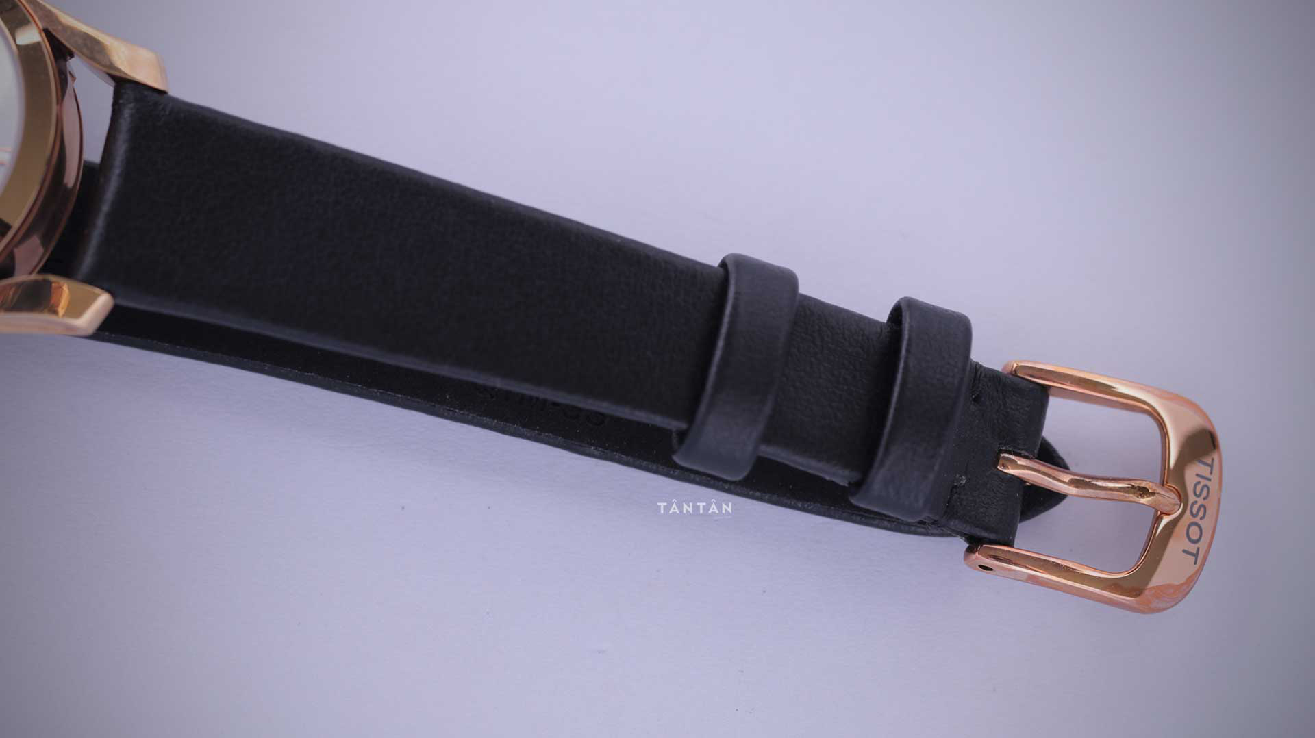 Bên cạnh đó, T112.210.36.111.00 được trang bị dây da cao cấp dạng ép không đường may, thuộc màu đen góp phần tôn lên nét đẹp nữ tính, quyến rũ của những người phụ nữ hiện đại. Đi kèm theo là khóa cài tiện lợi dễ dàng đeo vào, tháo ra cố định trên cổ tay không bị bung ra khi vận động mạnh. Thêm vào đó, mặt khóa cũng được cắt gọt với những đường cong mềm mại và khắc chìm “Tissot” đầy tinh tế.