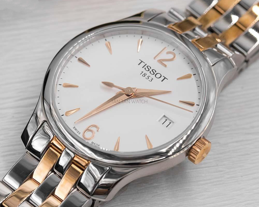 Tissot một thương hiệu không còn quá xa lạ gì với những nhiều tín đồ đồng hồ trên khắp thế giới. Thương hiệu Thụy Sĩ này luôn tạo ra những chiếc đồng hồ với nhiều kiểu dáng đa dạng và quan trọng nhất là cung cấp cho người dùng một chiếc đồng hồ chuẩn chất lượng “Swiss Made” với giá cả phải chăng nhất. Đến từ BST Tradition, Tissot T063.210.22.037.01 phiên bản demi vàng hồng là một đại diện tiêu biểu cho tinh thần ấy với thiết kế sang trọng, đầy lôi cuốn.