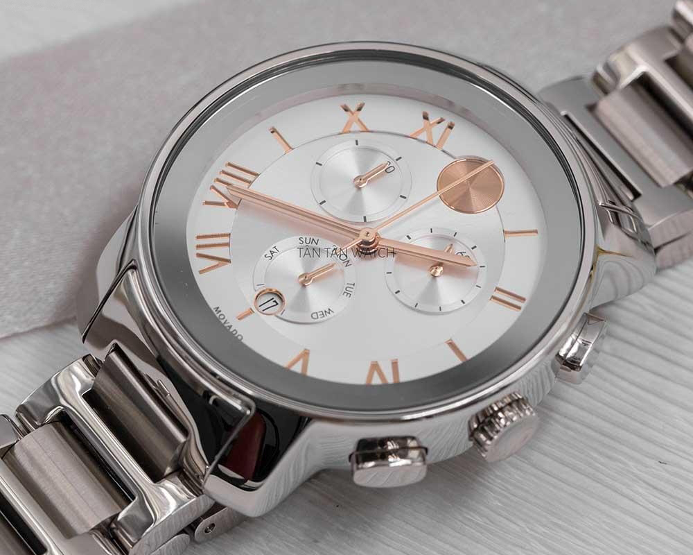 ✓ Mặt số màu bạc kiểu multi-dial hiện đại đậm chất Movado.