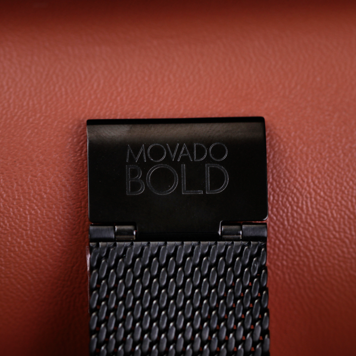 Ngay từ cái nhìn đầu tiên, mẫu đồng hồ Movado này gây ấn tượng với tone màu đen mạnh mẽ trên nền mặt số, kết hợp cùng phần vỏ và dây đeo làm bằng thép không gỉ cao cấp, mang đến vẻ ngoài vừa sang trọng vừa chắc chắn. Thiết kế dây lưới kim loại càng giúp tổng thể trở nên hiện đại hơn, đồng thời đem lại cảm giác đeo êm ái và thoáng nhẹ trên cổ tay suốt ngày dài.