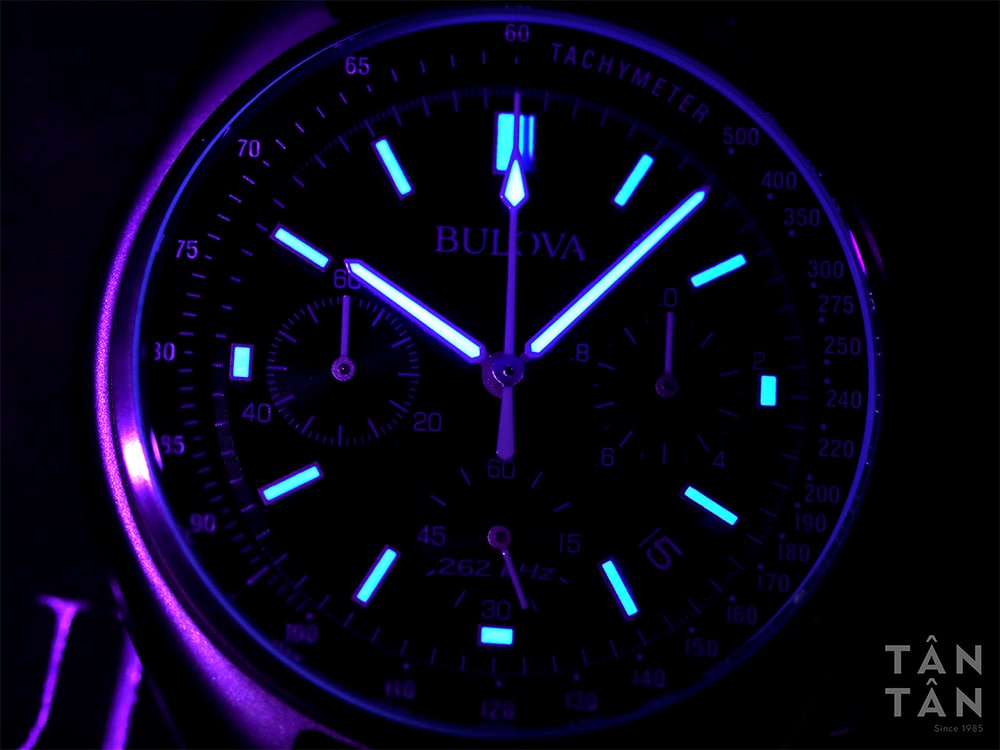 Là chiếc đồng hồ lên mặt trăng, với điều kiện ánh sáng yếu ở thiên thể này, nên Moon Chronograph Watch có bộ kim chính và cọc số được phủ dạ quang nổi bật hỗ trợ rất tốt cho các phi hành gia để kiểm soát tiến độ công việc. Thừa hưởng tính năng này, Bulova 96B251 có khả năng hiển thị rõ ràng thời gian trong trời tối, giúp các chàng trai quan sát thời gian bất kể điều kiện ánh sáng.