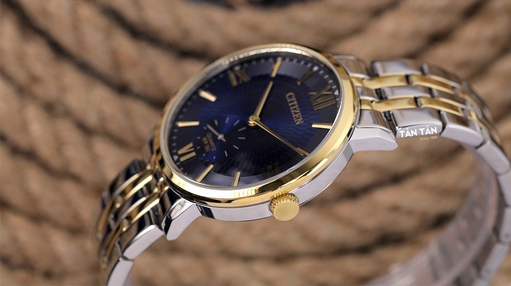 Ngay khi nhìn vào, ta có thể thấy rằng Citizen BE9176-76L toát lên một vẻ lịch lãm, nam tính với gam màu trắng bạc mạ demi màu vàng gold của bộ vỏ và dây thép không gỉ mang đến một ấn tượng, khác biệt. Bộ kim và cọc số cũng được thiết kế thanh mảnh, ánh vàng nổi bật, sắp xếp cân đối tạo nên một tổng thể hài hòa trên mặt số màu xanh dương.