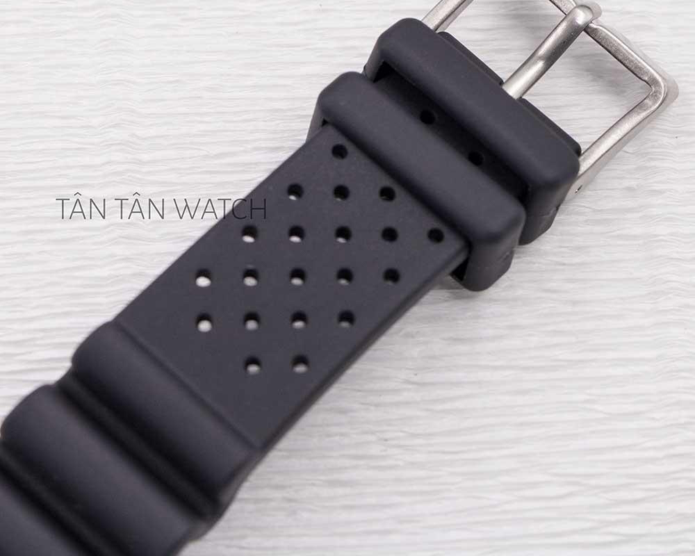 Citizen NY0088-11E được trang bị dây đeo cao su dẻo dai và bền bỉ. Sử dụng chất liệu cao su tổng hợp cao cấp, bộ dây mang lại cho các chàng trai sự yên tâm tuyệt đối khi rửa tay, đi mưa, đi bơi và tất nhiên là cả lặn sâu mà không sợ sự ăn mòn từ nước biển hay đứt gãy dưới áp lực nước.