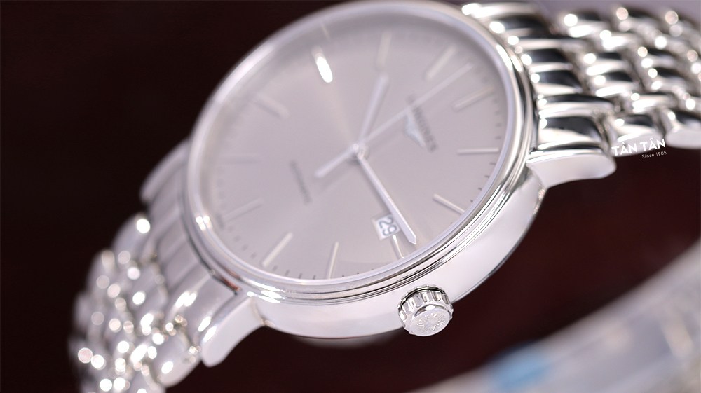 Để giữ đúng tinh thần đơn giản, cổ điển của bộ sưu tập Présence, chiếc Longines L4.921.4.72.6 mang đến ấn tượng đầu tiên là bộ vỏ mỏng chỉ 8.3mm đầy ấn tượng cùng gam màu bạc sang trọng của chất liệu thép không gỉ xuyên suốt tất cả các chi tiết.