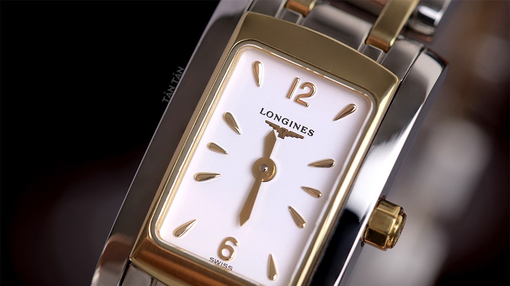Thuộc vào BST Dolce Vita đặc trưng với những chiếc đồng hồ vỏ hình chữ nhật, mặt số của Longines L5.158.5.28.7 mang đậm nét cổ điển rất nổi bật từ chất liệu đến các bài trí các chi tiết. Mặt số được hoàn thiện với nền trắng tinh giản cùng các chi tiết màu vàng gold nổi bật bên trên. Nổi bật giữa trung tâm là bộ kim dạng lưỡi kiếm cũng được cắt gọt tỉ mỉ tạo nên sự tinh tế trong thiết kế, tuy không quá cầu kỳ cùng với việc lược bỏ kim giây khắc họa thêm nét đơn giản và giúp mặt số nhỏ nhắn này trông thoáng hơn. Các mốc giờ index đối xứng với nhau dọc viền mặt số hình chữ nhật được hoàn thiện tinh xảo màu vàng gold nổi bật. Riêng vị trí 6 & 12 giờ được thay thế bằng chữ số Arab điểm xuyết cho mặt số không đơn điệu và mang đến tổng thể nét hoài cổ từ cảm hứng thương hiệu.