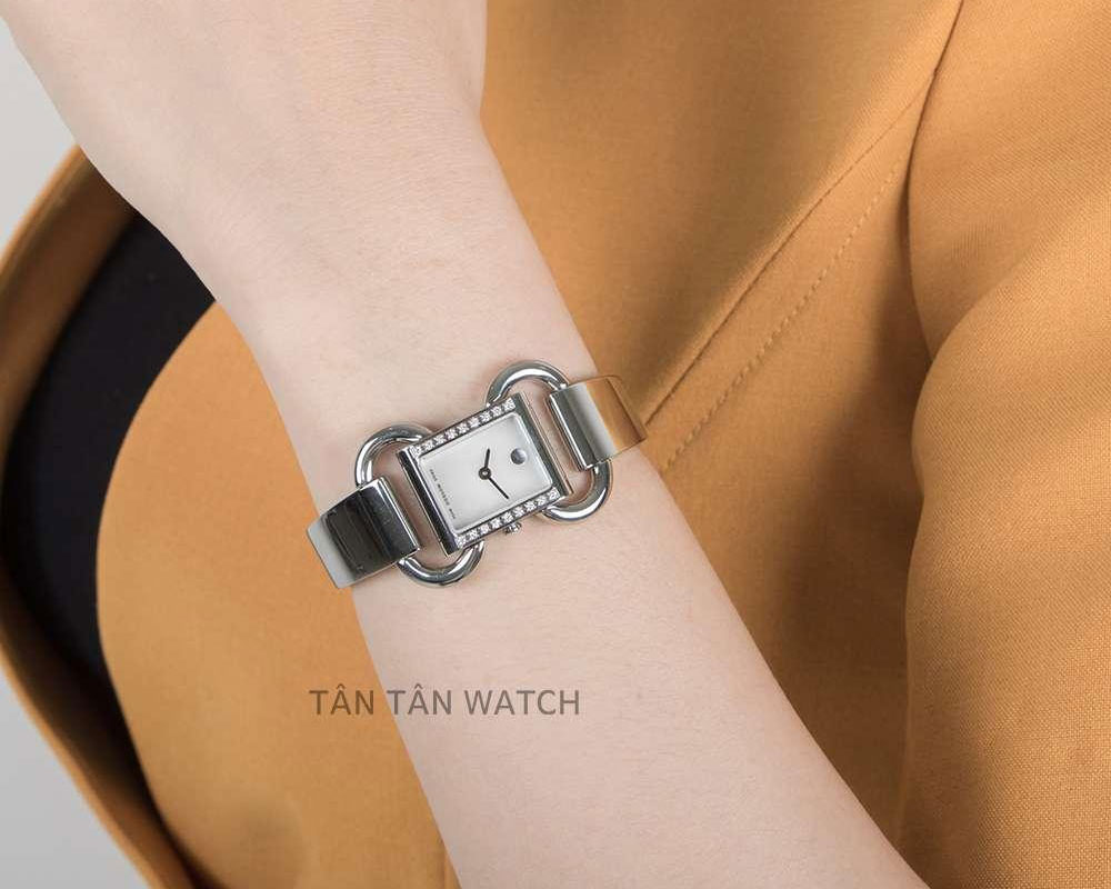✓ Bộ vỏ thép không gỉ hình chữ nhật độc đáo và thời thượng đính 18 viên kim cương dọc 2 viền bezel.