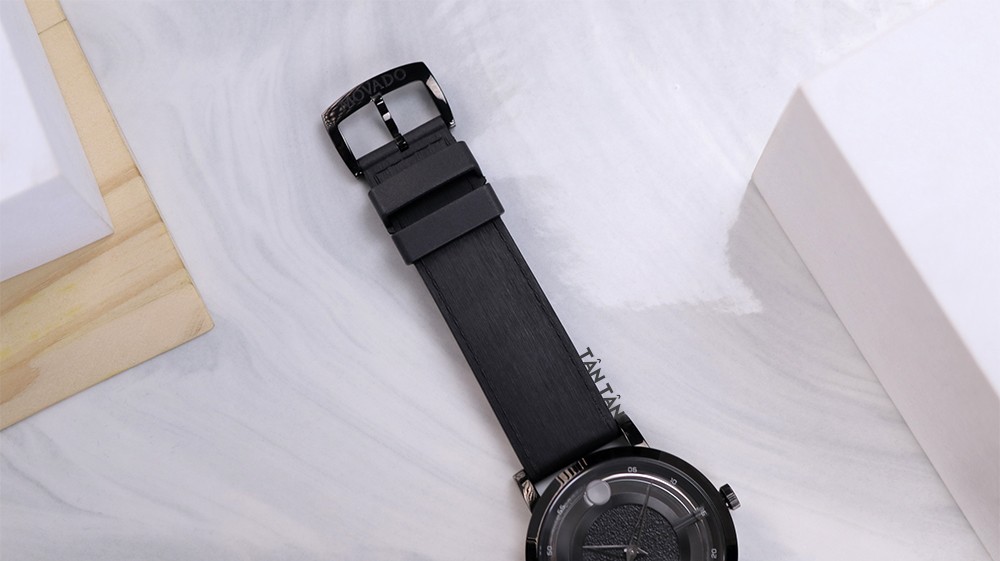 Thêm vào đó, Movado 0606568 được trang bị dây đeo cao su màu đen mạnh mẽ với những đường vân chải xước cùng với từng đường kim mũi chỉ tệp màu và đều đặn tạo nên sự tinh tế, thẩm mỹ trong thiết kế nhà Movado. Với đặc tính dẻo dai và bền bỉ vượt trội, dây đeo sẽ ôm trọn cổ tay và giúp các chàng trai thoải mái vận động. Kết hợp cùng dây cao su là khóa cài đơn giản đồng nhất với tổng thể rất chắc chắn và thuận tiện trong thao tác tháo mở.