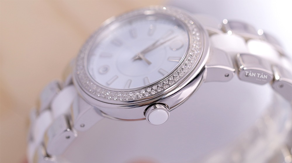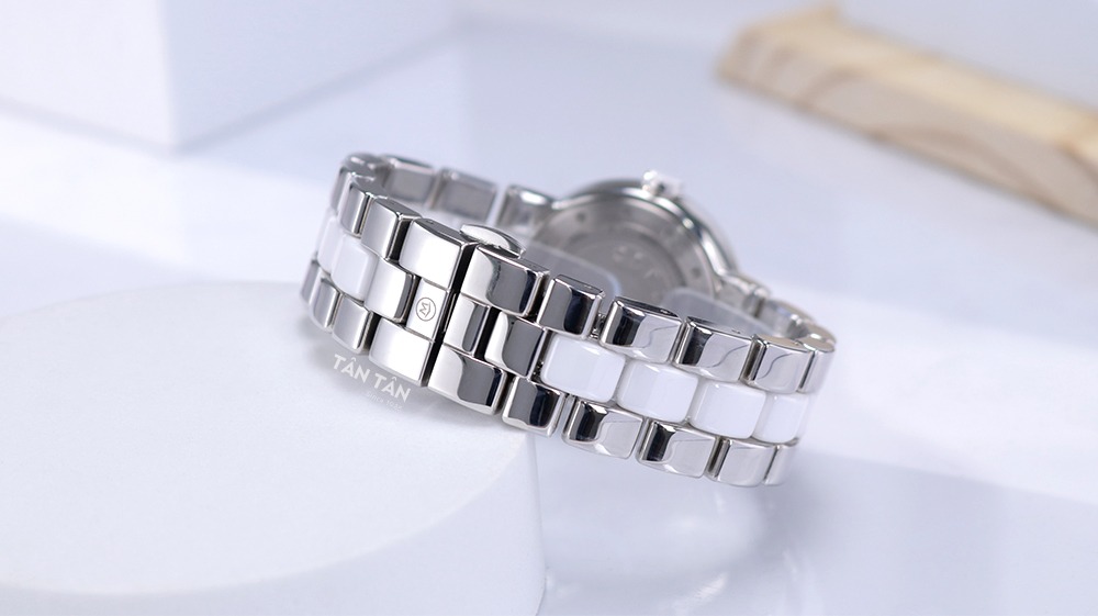 ✓ Dây đeo được kết hợp giữa chất liệu thép không gỉ và Ceramic trắng thanh lịch.