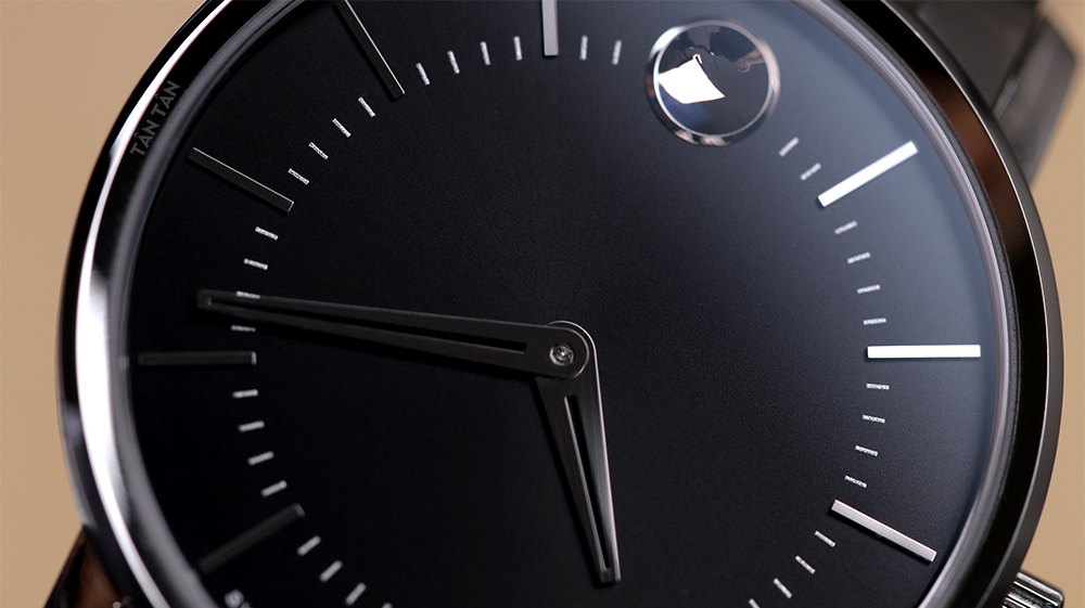2. Mặt số đen tuyền thu hút với các chi tiết hài hòa đậm chất Movado