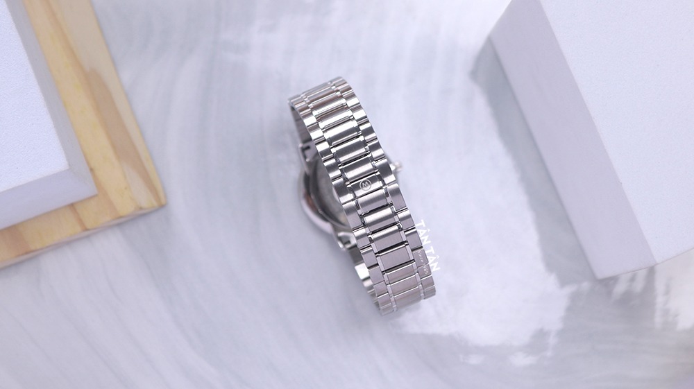 Thêm vào đó, núm chỉnh giờ tại góc 3 giờ quen thuộc là một chi tiết hợp lý cùng những đường rãnh tinh tế thuận tiện việc điều chỉnh thời gian. Và để dây đeo được liền mạch hơn, các nhà chế tác sử dụng khóa cân bằng với phần gập giấu vào trong giúp dây đeo gọn gàng, ôm chặt cổ tay các nàng.