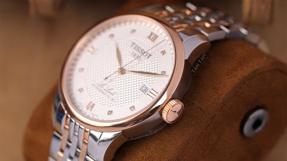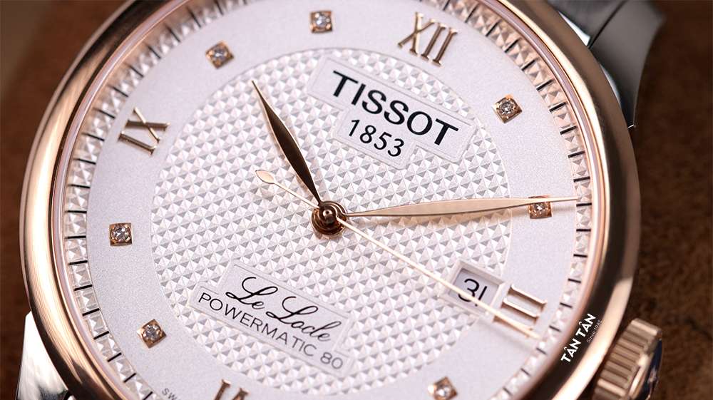 Ấn tượng đầu tiên mà mặt số của Tissot T006.407.22.036.00 mang lại là vẻ đẹp sắc sảo, sang trọng với hàng loạt những chi tiết độc đáo được sắp xếp và phân bổ cân đối, hài hòa tạo nên một tổng thể cực kỳ nổi bật. Ở góc 6 giờ là tên thương hiệu bộ sưu tập Le Locle cùng ký hiệu bộ máy Powermatic 80 trứ danh, góc 3 giờ là lịch ngày được đặt gọn gàng. Ở sát cạnh dưới là dòng chữ Swiss Made khẳng định cho chất lượng cao cấp của sản phẩm.