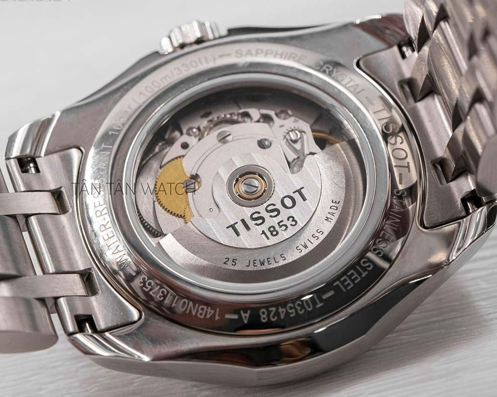 Tissot T035.428.11.051.00 được trang bị bộ máy Automatic Thụy Sĩ hoạt động bền bỉ, chính xác và ổn định. Bộ máy được cung cấp bởi nhà máy ETA với số hiệu calibre 2825-2. Đây là một bộ máy cơ tự động được sử dụng phổ biến của Tissot, trang bị 25 chân kính hoạt động với tần số 28800 nhịp/giờ và thời gian trữ cót khoảng 40h nếu được lên cót đầy đủ và sử dụng trong điều kiện phòng lab, sai số đồng hồ chỉ ở mức +-20 s/ngày.