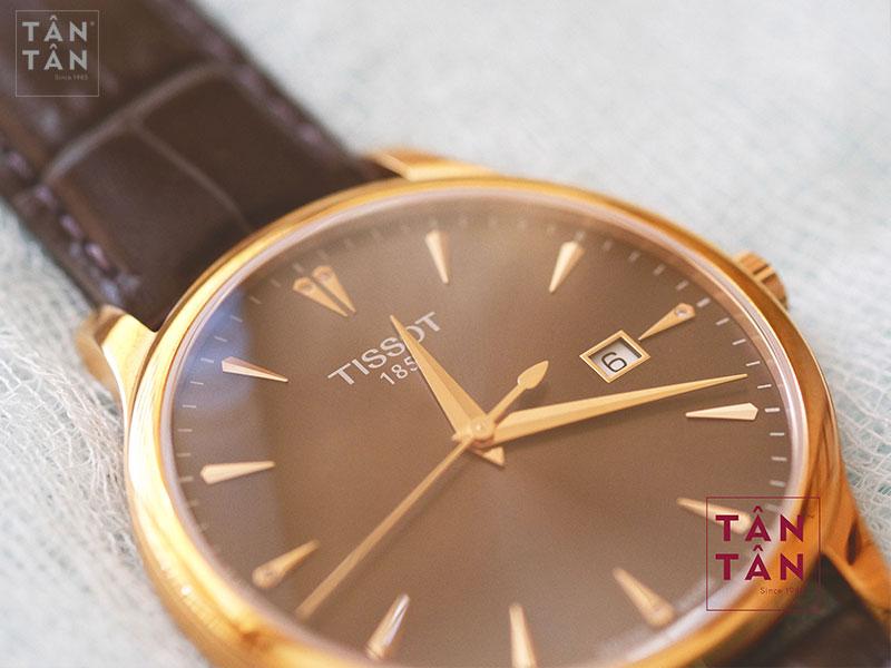 Đi cùng logo thương hiệu “Tissot” không quên cột mốc khai sinh ra một huyền thoại vào năm “1853” như ẩn ý rằng thương hiệu có ở vị trí danh vọng đỉnh cao nào cũng nên khắc cốt ghi tâm lịch sử khởi đầu của chính nó, song song đó, cũng như nhắc nhở những con người trong số chúng ta dù có thành công đến mấy cũng luôn nghĩ về nguồn cội của mình. Đồng thời, phía đối diện ngôi vị thương hiệu khẳng định chất lượng đạt chuẩn “Swiss Made” được trau chuốt tỉ mỉ đặt chỉn chu tại góc 6h, tính năng cửa sổ lịch ngày cũng được bố trí tại góc 3h giúp cho mục quản lý thời gian của người dùng thêm đa dạng hơn cả.