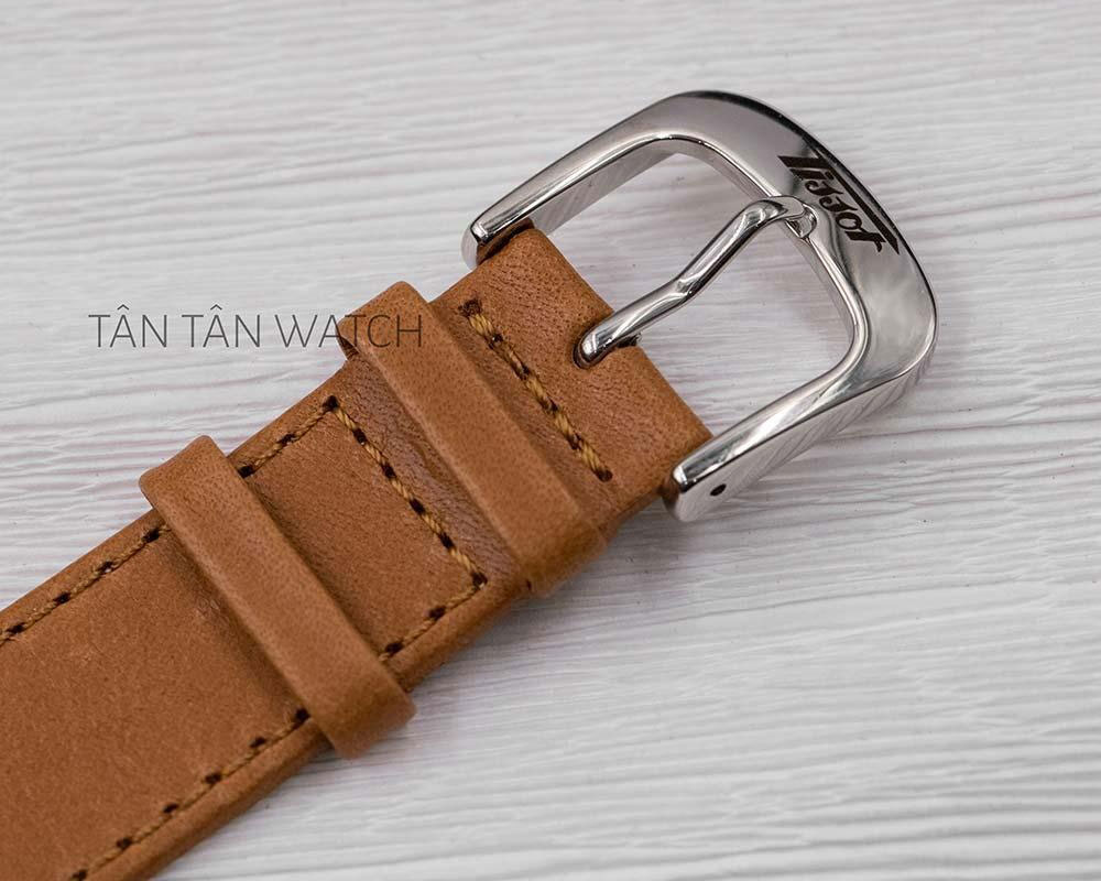 Dây đeo đồng hồ Tissot T118.410.16.277.00 được làm bằng chất da bê cao cấp, nhẹ nhàng trên cổ tay. Dây da thuộc nâu sáng nổi bật, trẻ trung được may chắc chắn bằng đường chỉ tiệp màu dọc viền dây mang đến nét thẩm mỹ cùng thời gian sử dụng bền lâu. Chất da sẽ mang đến phong cách thời trang ấn tượng, làm nổi bật sự sang trọng, trang nhã cho người đeo. Đi kèm với dây da là khóa cài tiện lợi dễ dàng đeo vào-tháo ra, cố định chắc chắn trên cổ tay không bị rơi trong các hoạt động mạnh.